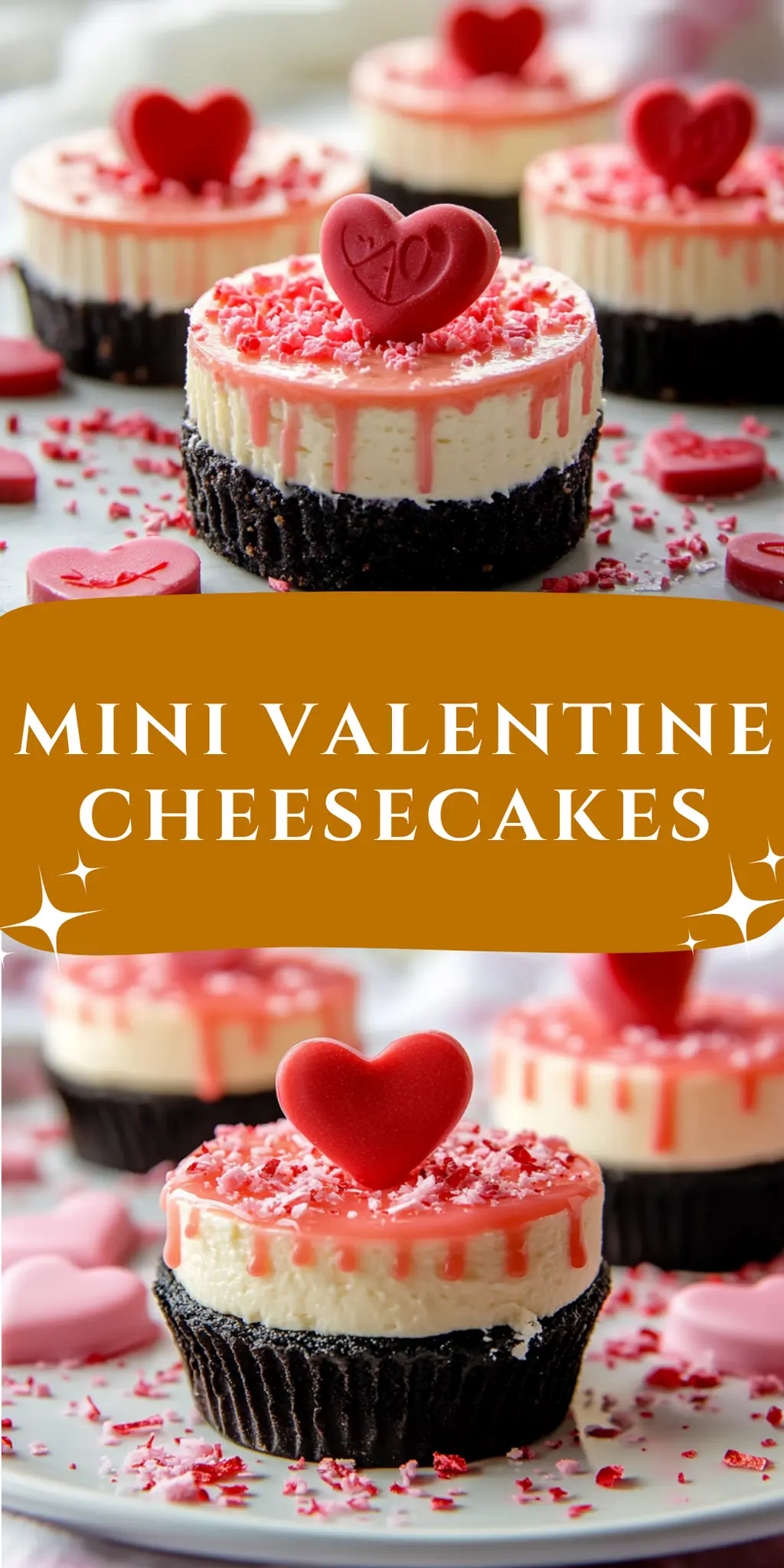 Delightful Mini Valentine Cheesecakes with a buttery Oreo crust and creamy filling, perfect for sharing on Valentine's Day.