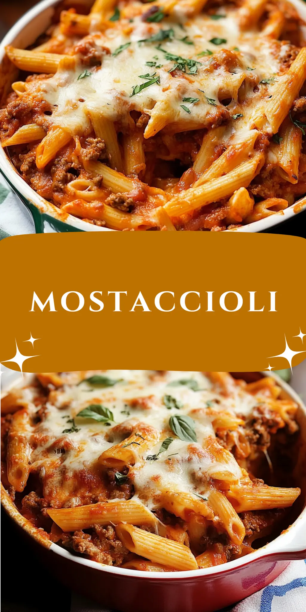 Reheating: To reheat, place the mostaccioli in a baking dish, cover with foil, and heat in the oven at 350°F for about 20 minutes, or until hot and bubbly.