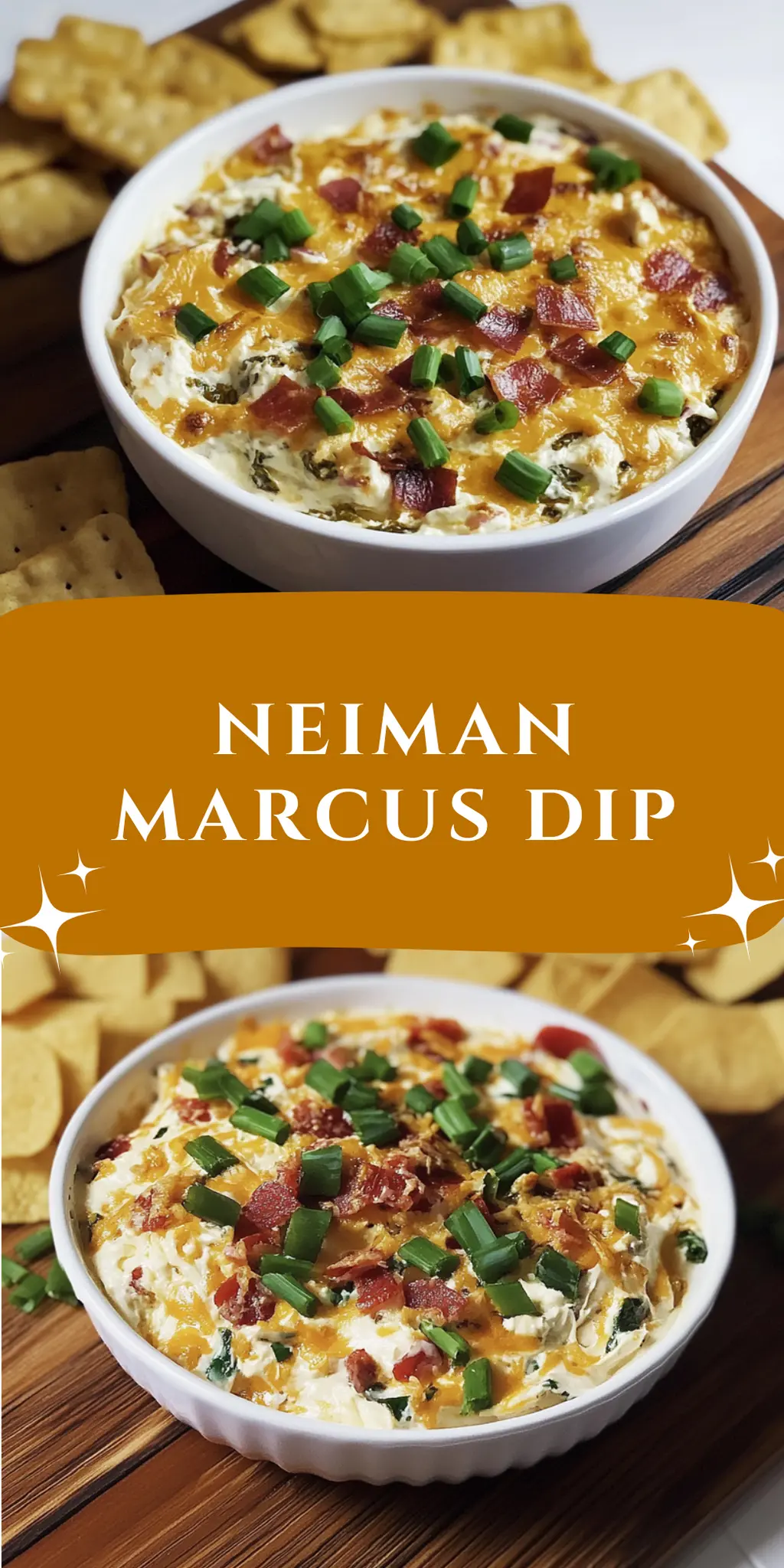 The Neiman Marcus Dip is a creamy, crowd-pleasing dish that combines toasted almonds, crumbled bacon, and sharp cheddar cheese.