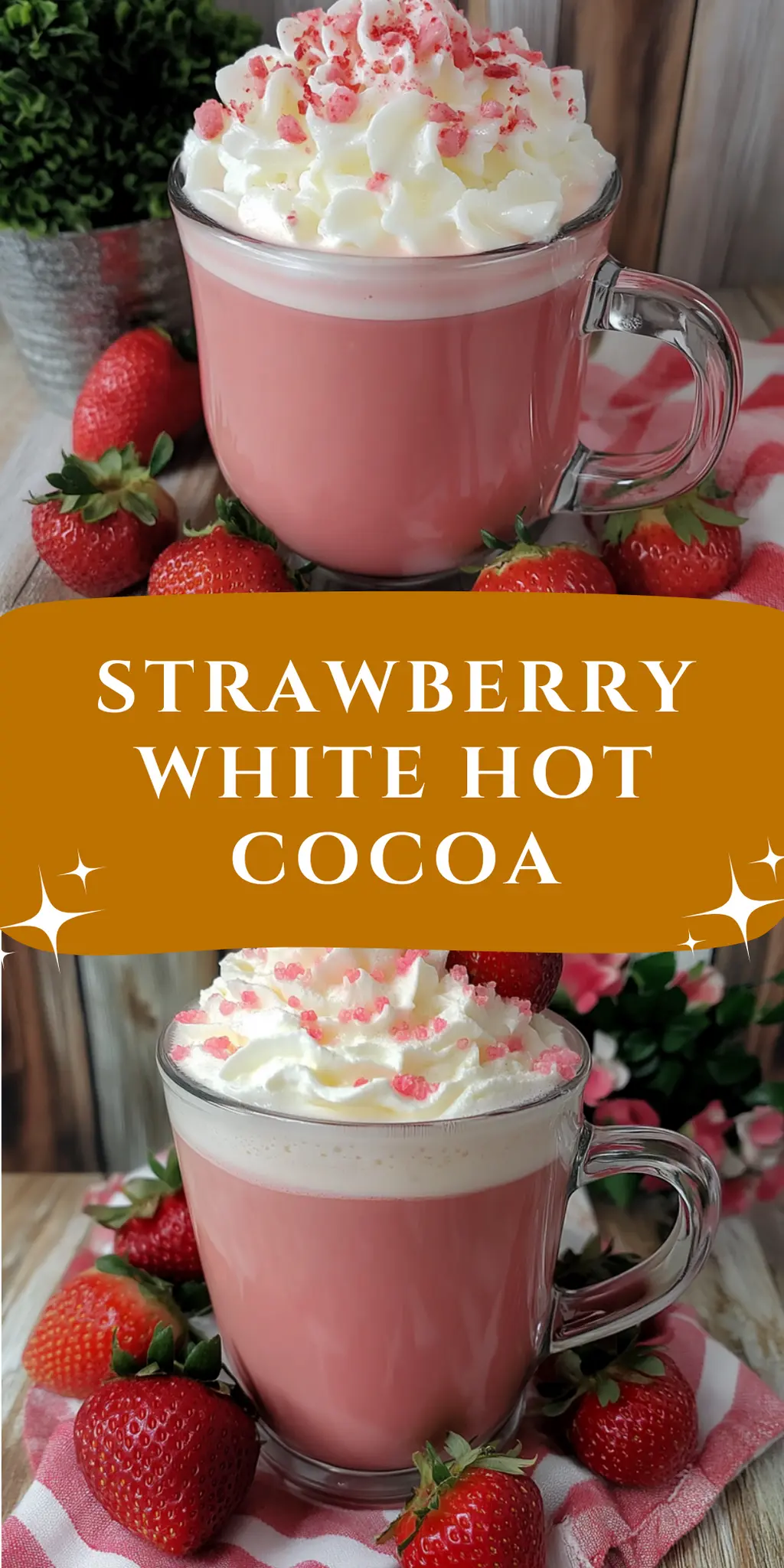 Serve and Garnish: Pour the Strawberry White Hot Cocoa into mugs. For an extra special touch, top with whipped cream and an additional garnish of fresh strawberries.
