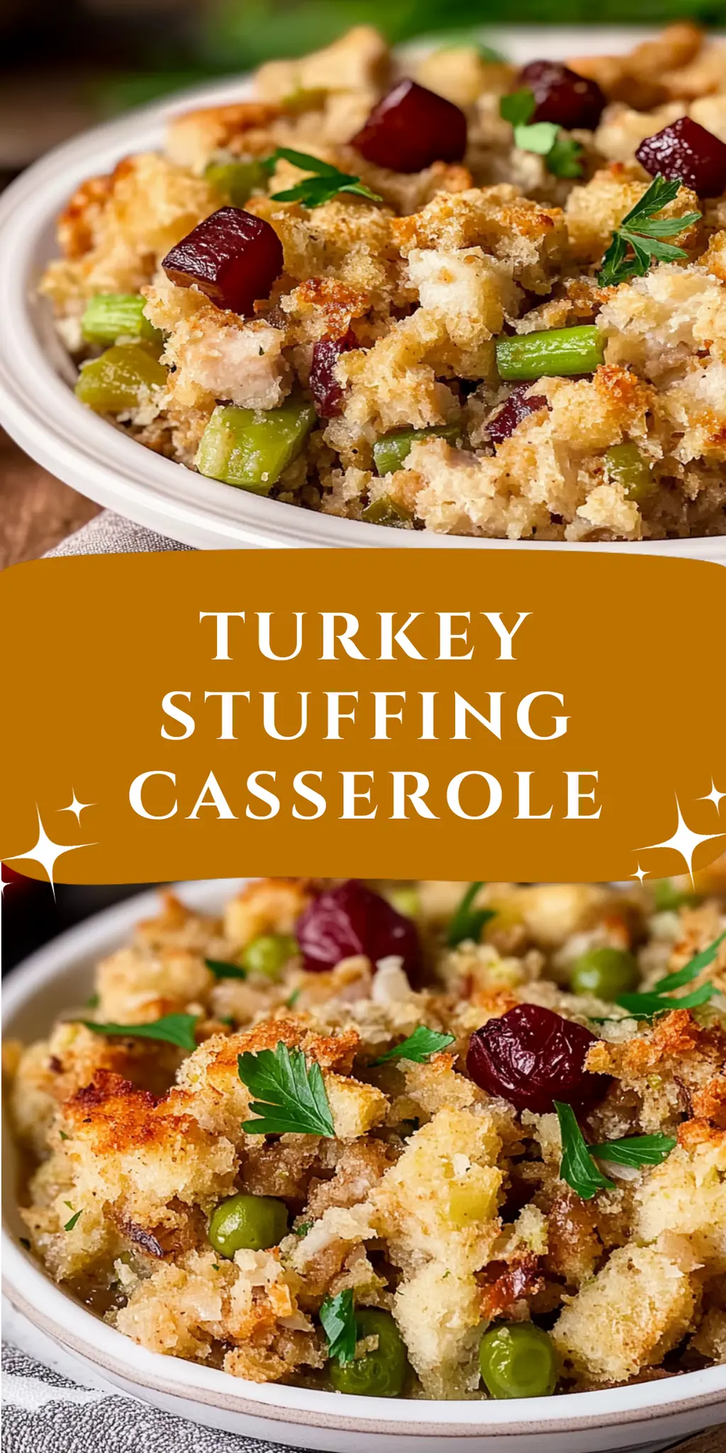 This Turkey Stuffing Casserole is sure to become a family favorite, combining familiar tastes in a refreshing way!