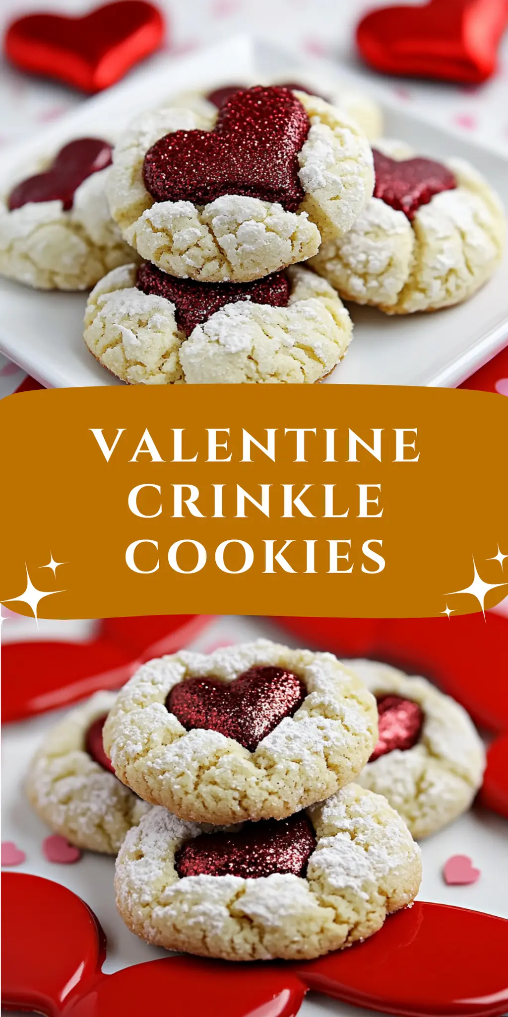 These Valentine Crinkle Cookies are easy to make and filled with chocolate hearts, perfect for celebrating love.
